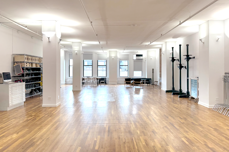 Over 2500 square feet of space, Studio 9 is brand new and the largest studio we’ve ever built at Noho Productions. We completed our renovation in January 2026, by combining Studio 7, Studio 8 and our seamless room into one large open studio space. Studio 9 is ideal for beauty, midsize fashion shoots, multiple sets, on and off-figure shoots, simultaneous still and video shoots and large e-commerce shoots. It is on the 8th floor and has 7 windows facing east, overlooking Crosby and Lafayette Street.
